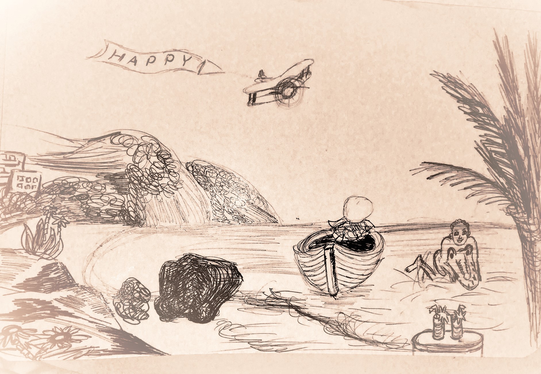 It´s a wonderful day on the seaside…. The ocean is so blue and turquoise that you think it looks like a colored postcard… and the sand is white and warm. A soft breeze is blowing so that it´s not too hot but a very nice feeling on the skin. Your family is around you…The children are laughing and giggling with their huge colored air filled animals. A little table beside you is filled with very nice soft drinks. You take one and smell pinapple and coconut flavour and the nice texture on your tongue… awesome good…