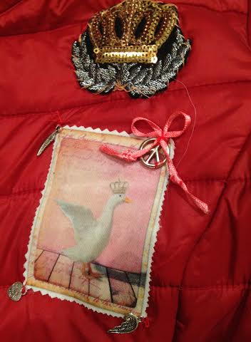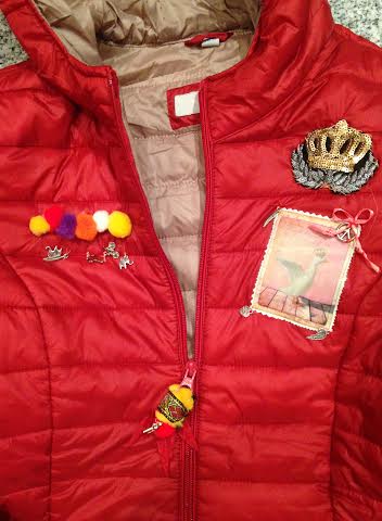 Kurz darauf kam meine Tochter ins Schlafzimmer: „Weißt Du Mama, Du solltest wirklich nicht immer an mein Handy gehen, ein bißchen Privatsphäre könntest Du mir doch lassen…“ Mir blieb die Spucke weg, „Aber…“ brachte ich noch heraus. Meine Tochter zwinkerte: „Schon gut, aber in Zukunft versuchst Du, etwas mehr loszulassen, ok? Is ja sonst peinlich!“ Ich enthielt mich jeden Kommentars. Mein Blick fliel auf den schönen Discounter-Anorak, den ich vor kurzem gekauft hatte – Ja, das war jetzt meine wahre Bestimmung. Ran an die Restekiste – unten seht Ihr das handarbeitliche Werk einer zwar als Mama heute eher unfähigen Frau, aber in Basteleien müßt Ihr doch zugeben mit einer mindestens eine versierte 3-, nicht ganz so unbgabt,oder (irgendwie muß man sich ja trösten…)?