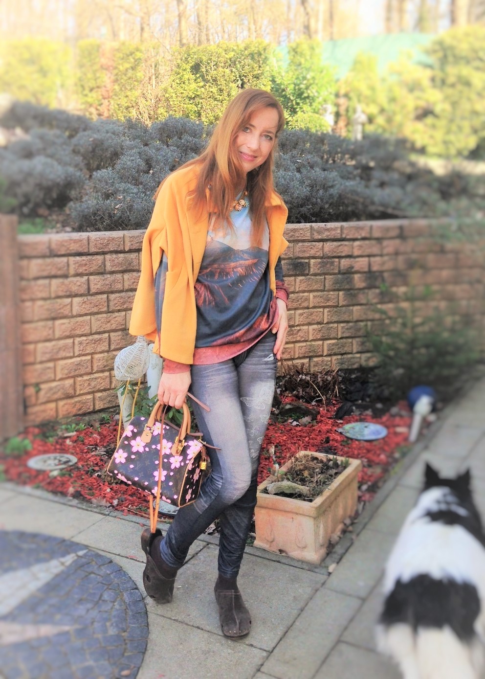 viel ist passiert, so sind die Hündchen endlich ohne Probleme geboren (ein Bericht wird noch folgen) und die Sonne hat schon einige ernsthafte Versuche unternommen, den Frühling einkehren zu lassen… Deshalb möchte ich euch heute schnell noch ein fröhliches Frühjahresoutfit vorstellen. Einzelteile kennt ihr schon, aber ich finde die Kombi ganz gut und es zeigt, dass man nicht alles immer neu kaufen muß. Mittlerweile wird mir immer klarer, dass ein kleinerer, feinerer Kleiderschrank oft besser als eine Ansammlung von Massen ist, bei denen man oft den Überblick verliert und die dann, wenn man etwas anziehen möchte, nicht im optimalen Zutand ist. Ist der Kleiderschrank vollgequetscht, muß man oft erst einmal Bügeln oder einen Knopf annähen…