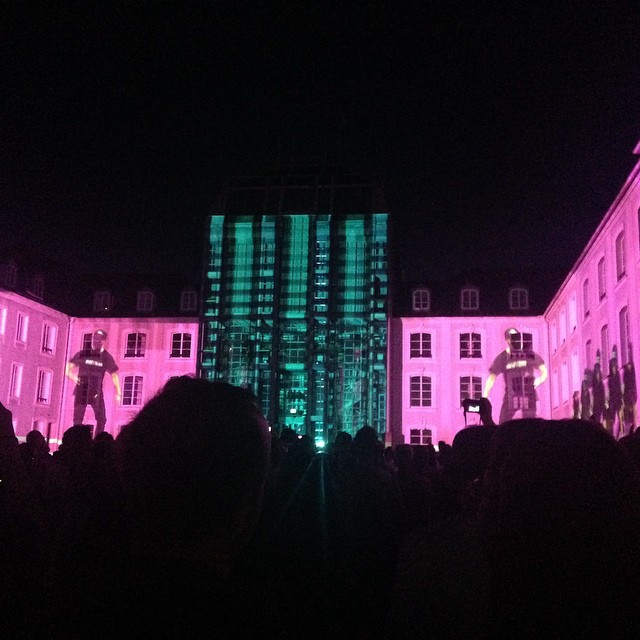 Saarbrücken von seiner kulturellen Seite – Hier moderne Farbprojektionen auf dem Schloss in diesem Frühjahr