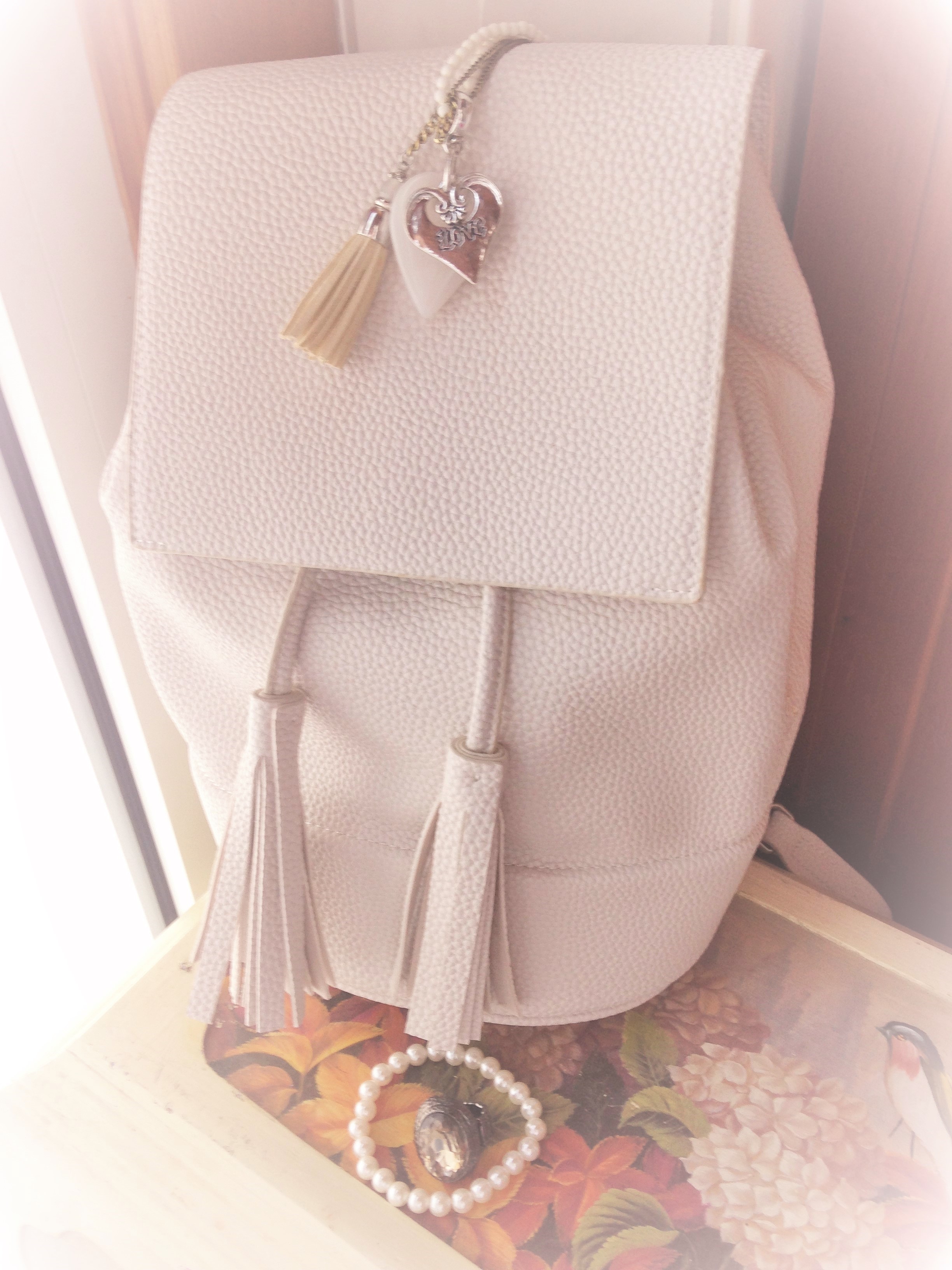 The backpack is from Zara. It has tassels and fits to many outfits. It´s very good for shopping, cause your hands are free..
