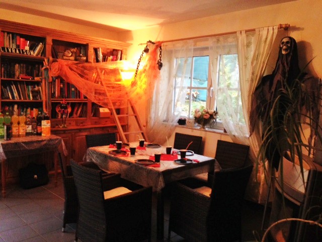 Ohne Nessy´s Eltern hätte das Ganze nie so schön geklappt… Die haben soo viel geschafft! Ist es nicht toll, wenn man solche lieben Eltern hat? Das ganze phantasievolle, wohlschmeckende Grusel-Gebäck (ja, auch ich habe es probiert!), die Noten zum Singen in 15-facher Ausführung, liebevoll gebunden, die musikalische Untermalung und soo viele Vorbereitungs- und Aufräumarbeiten gehen auf ihr Konto! Und auch die lieben Gäste hatten allerlei Köstlichkeiten mitgebracht und mit Feuerschalen und sonstigem ausgeholfen… Es war schön, dass sie alle gekommen sind und wir alle zusammen mit den Kindern und „neuen und alten“ Freunden ein Super-Grusel-Fest hatten!