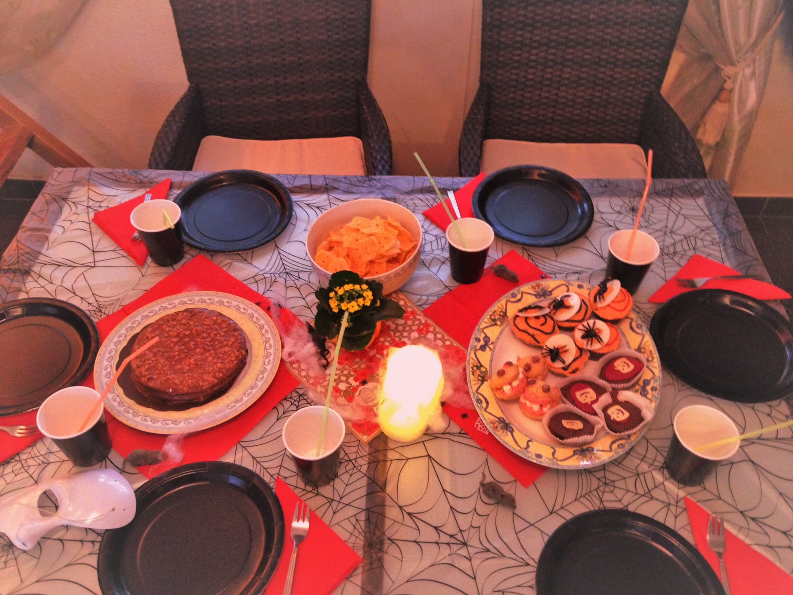 Was mir gleich komisch vorkam, war, das heute anscheinend Spinnen, Würmer und kleine Monster sowie Kuchen mit Blut beschmiert verzehrt werden sollten. Nomalerweise sind meine Menschen da sehr empfindlich. Nessy kreischt schon bei einer winzigen Spinne um ihr Leben… dann muß der Menschen-Rudelführer kommen und sie mit einem Glas, damit der Spinne nix passiert, nach draußen befördern. Lächerlich… Unser Rudelführer Luna macht da kurzen Prozeß. Pfote drauf und HAPPS! Aber heute hat sie sogar einen Blutkuchen gegessen, die Möchtegern-Vegetarier-Nessy!