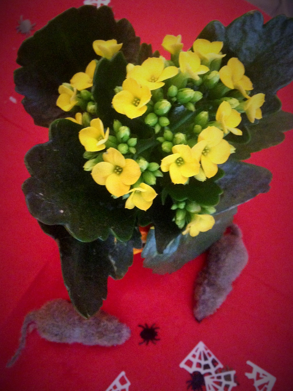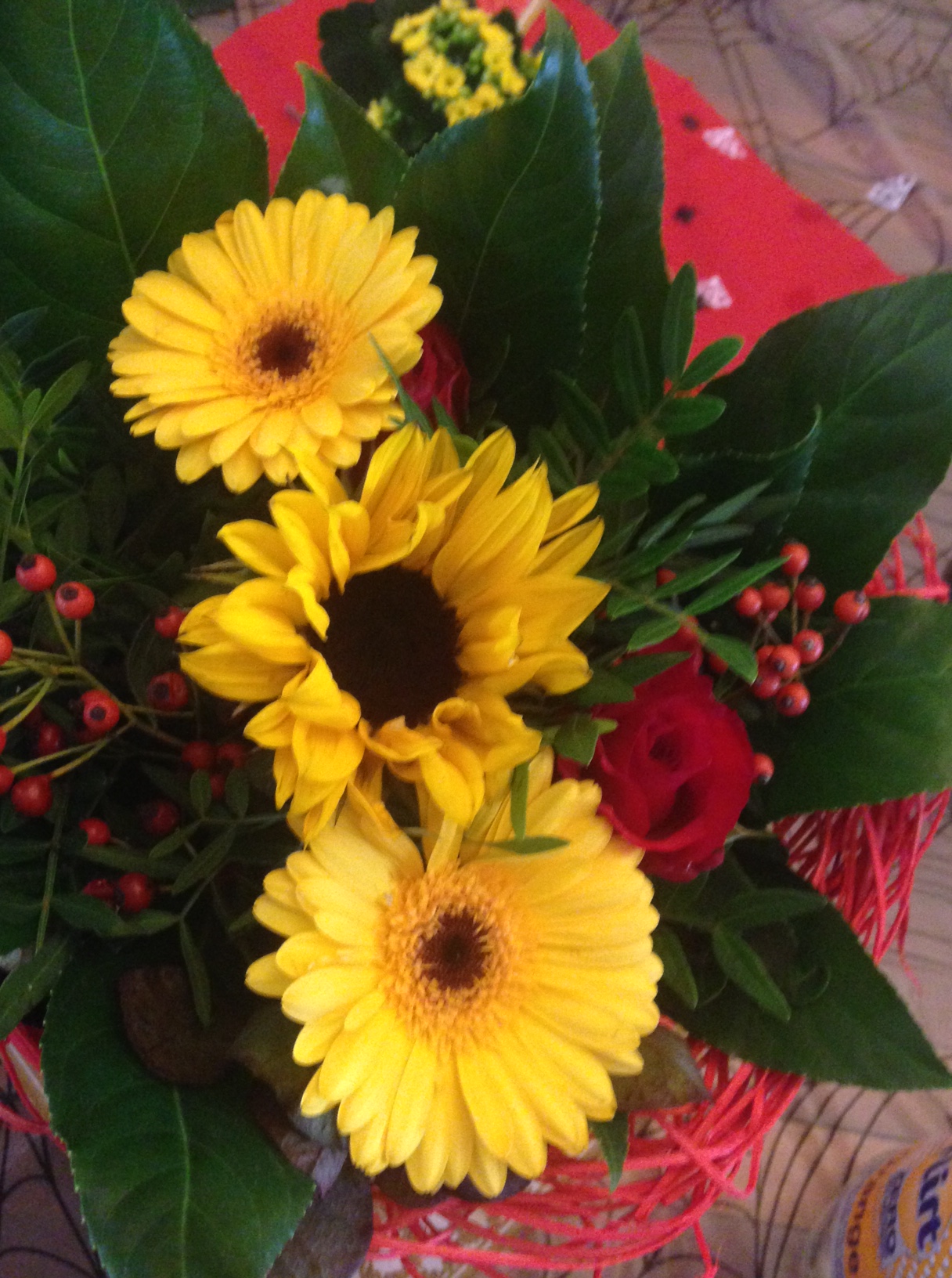 Nessy hatte überall gelbe Blumen dekoriert. Fragt mich nicht nach dem Sinn…