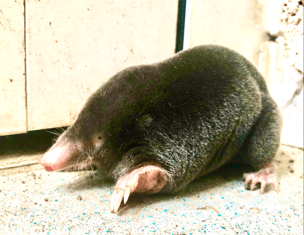 Dieses ist ein Motiv, das man so selten vor die Linse bekommt! Dieser pelzige Geselle ist die Kellertreppe hinuntergelaufen, aber hinauf hat er es nicht mehr aus eigener Kraft geschafft. Er war darüber sehr erbost und hat uns wütend angefaucht. Ich hatte bis dahin nicht gewusst, dass Maulwürfe fauchen können! Natürlich haben wir ihn vorsichtig in eine Pappschachtel bugsiert und ihn dann oben im Wald wieder frei gelassen.