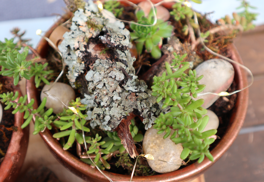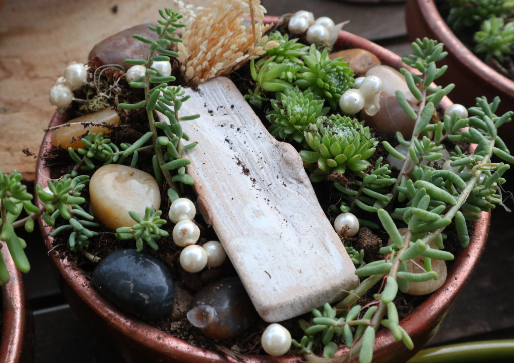 Aber das Schönste an ihnen will ich Euch nicht verheimlichen. Denn manchmal ist es (zumindest bei mir) so, dass man (oder Frauen wie ich) seine /ihre Kreativität voll ausleben muss (müssen), weil der Alltag einfach gerade derart unkreativ ist, dass man droht, zu vertrocknen wie ein Frühjahrsprimelchen ohne Wasser. Außerdem kann man nicht abstreiten, dass das Dekorieren von kleinen ,,Zaubergärtchen“ mit Sukkulenten sehr viel Spaß machen kann!