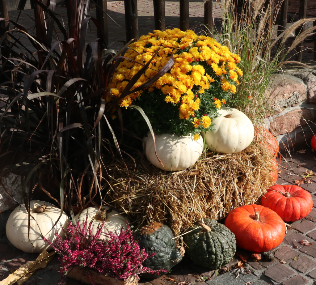 Überall waren liebevoll gemachte Herbst-Arrangements