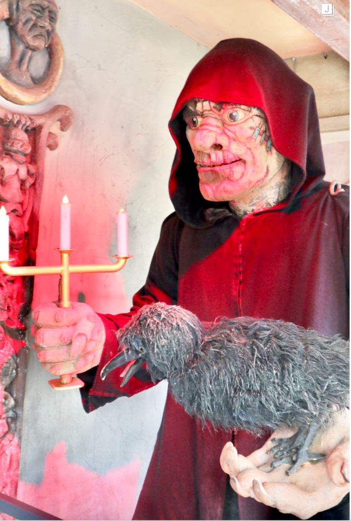 Tatsächlich blieb auch mir der Mund offen stehen, als mich gleich am Eingang eine überwältigende, gespenstische, aber auch sonnig-fröhliche und mit viel Liebe zum Detail hergestellte Deko empfing. Und ich merkte zu meinem Erstaunen, dass ich tatsächlich in eine außergewöhnliche, erwartungsvolle Stimmung versetzt wurde, die etwas von dem Zauber der Kindheit in meiner Erinnerung wachrief,dessen Existenz ich lange nicht mehr gespürt hatte!
