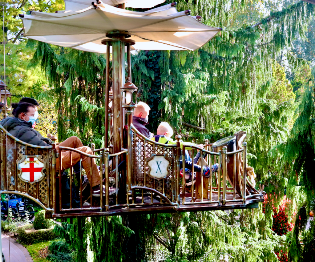 Denn die Schutzvorkehrungen waren vorbildlich und angenehm. In den Fahrgeschäften, Bimmelbähnchen und Fluggeräten wurde bei ,,Fremden“ immer ein Platz bzw. eine Reihe freigelassen. Die meisten Leute trugen Mundschutze und rutschte er von der Nase, tauchte sogleich eine dienstbeflissene gute Seele aus dem Nichts auf und machte diese spezielle Handbewegung, die es erst seit Corona gibt und die signalisiert, den Mundschutz nach oben zu ziehen. Überall gab es zudem Desinfektionsfläschchen, die zumindest ich fleißig benutzte und so hatte ich seltsamerweise wirklich keine Angst, mich anzustecken. Vielleicht war ich aber auch nur schon eine Spur zu abgeklärt. Wenn so lange ,,nichts“ passiert ist, wird es irgendwie in meiner eigenen Logik immer unwahrscheinlicher, dass auch ich mich anstecke, wobei diese Logik natürlich falsch ist, vor allem auch angesichts der wieder steigenden Zahlen!