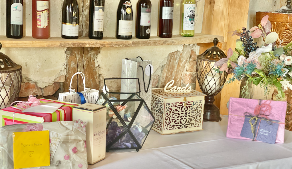 Am Geschenketisch empfiehlt sich eine abschließbare Box für die Karten mit eventuellen Geldgeschenken. Besonders schöne Exemplare eignen sich selbst als Gastgeschenk ….