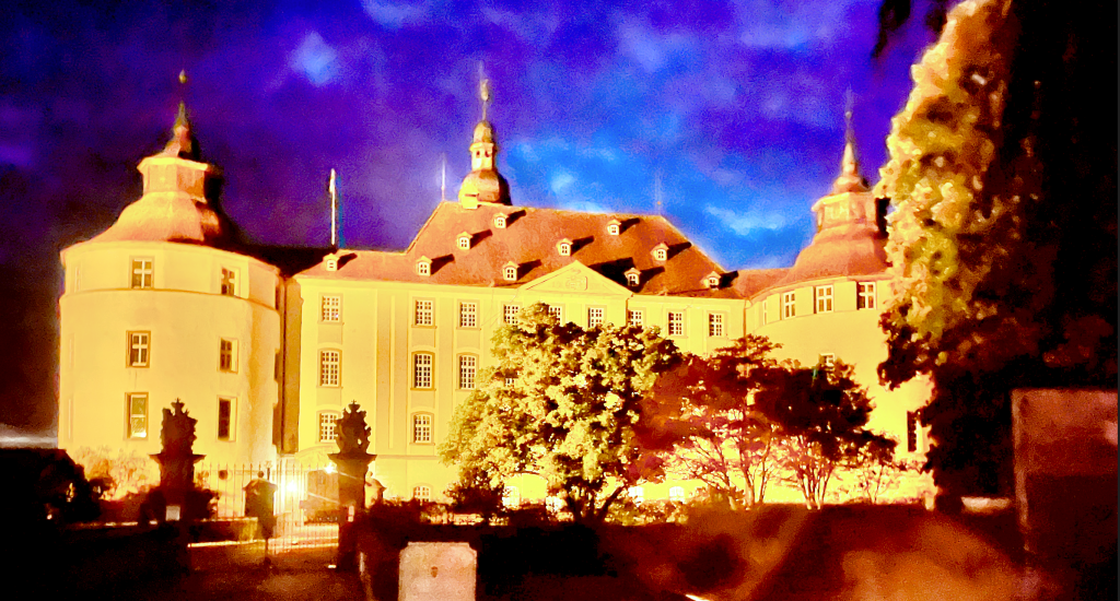 Während am Tag vorher der Himmel noch bewölkt war und das majestätische Schloss in dunkle Wolken hüllte …