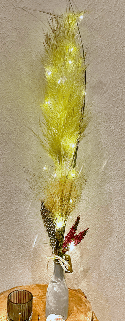 • satinierte Vasen, auf wunsch gefüllt mit einem dekorierten, beleuchtbaren Pampas-Gras (incl. Lichterkette)