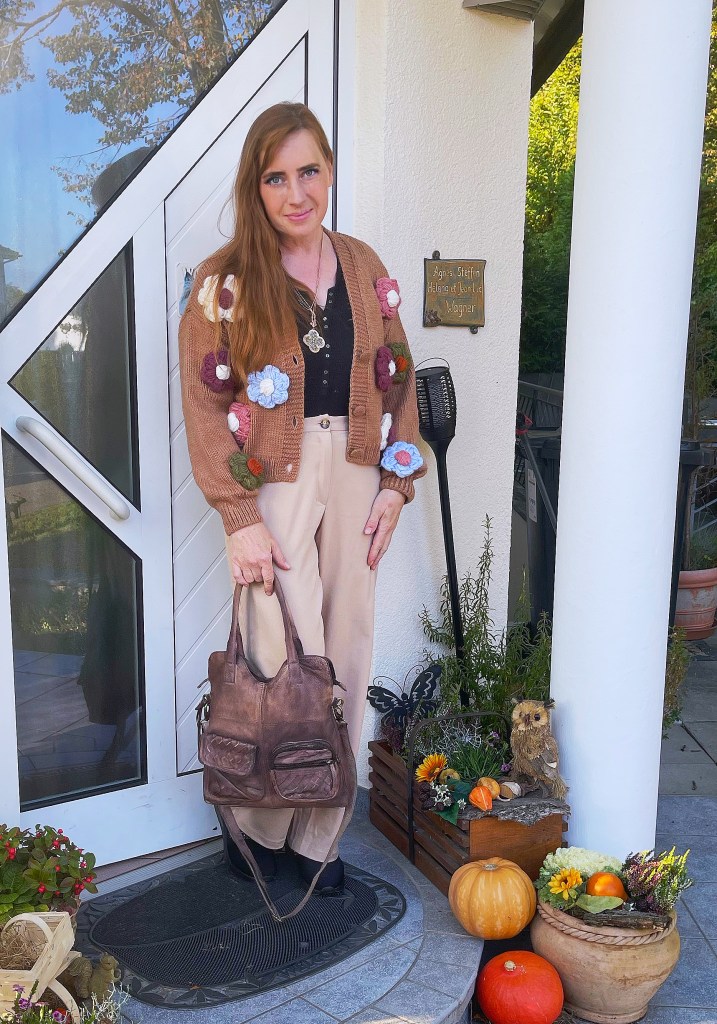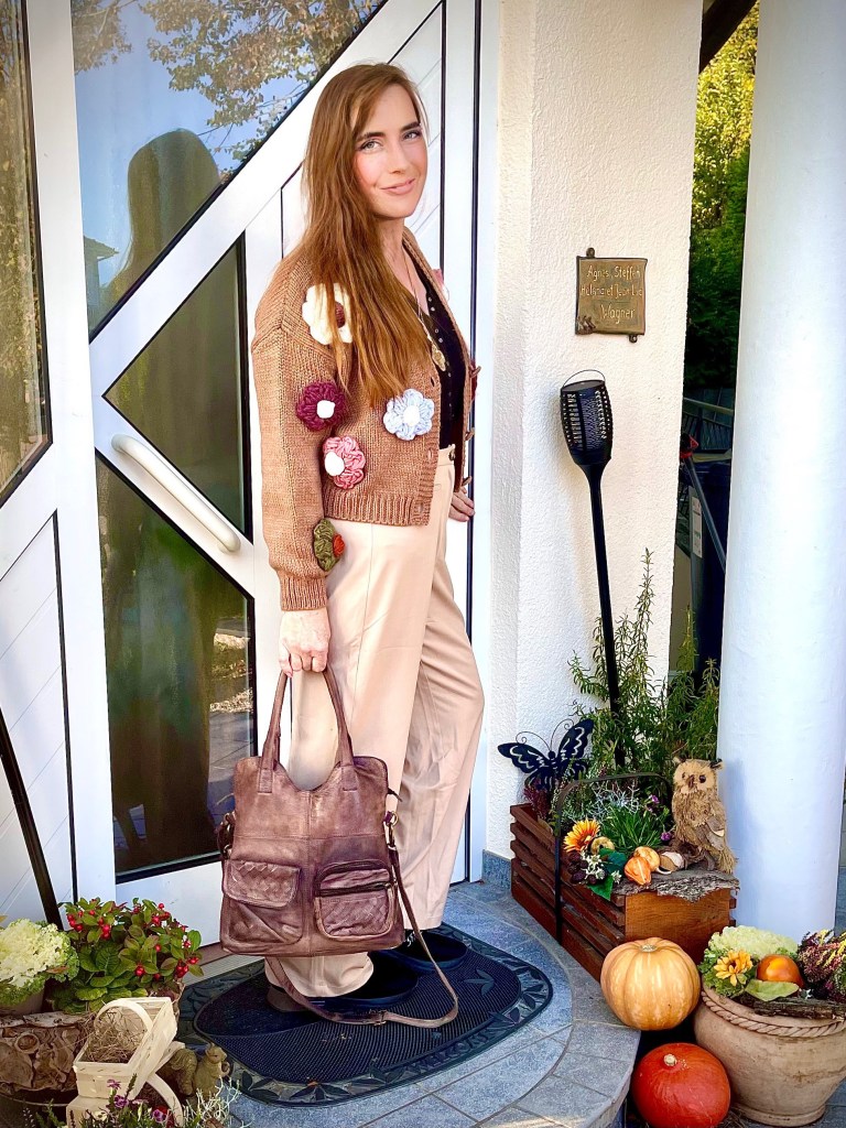 Die Strickjacke ist ganz weit vorne liebe Nessy, aber die Hose schein mir etwas zu weit zu sein für Dich 😉 Ich trage schon seit Jahren Beigetöne, doch ich bin ja auch der Herbsttyp 😉 In meinen letzten Monatsbildern kannst Du mich mit meiner 70 Jahre alten Fliegerjacke auf meinem Moped sehen und bis auf die Schuhe, welche ich nur zum Fahren trage, ist es mein Herbststil 🙂 Hab einen goldenen Okrober und bleib gesund!