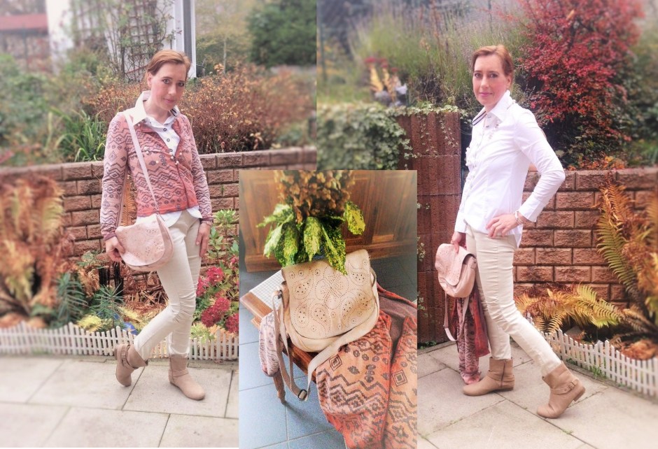 Und der Spiegeltest beweist es : PERFEKT! Dieses Nude-Rosé mit einem leicht kühlen Unterton passt super zu meinem warmen Hautton! So entsteht nun mein Look um dieses neue Teilchen herum! Immer mehr Klamotten tauchen auf, die dazu passen! Ich mach´es mir einfach und bleibe nur in dieser Farbgruppe! Denn es stimmt, er macht mich weder blass wie zu beiges Nude, noch zu Rot, noch zu Gelb! Sondern unterstreicht, wie ich finde, genau richtig die Frische in meinem Gesicht, die der kleine Herbstspaziergang, den wir bei unserem Shooting gemacht haben hineingezaubert hat! Obwohl es Herbst ist und kein Frühling, scheint doch dieser Ton, auf den ich ohne Tantchen Felicitas niemals gekommen wäre, ideal zu sein… danke, meine Liebe!