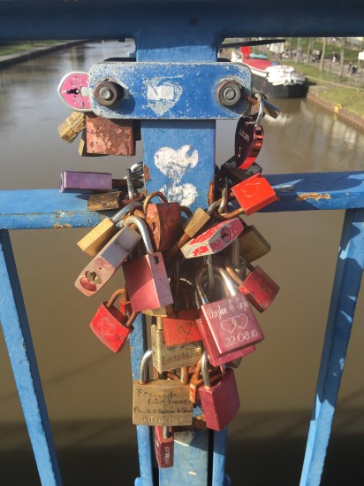 Und wieder werden meine trüben Gedanken einfach weggewischt, als wir an die Stelle kommen, wo an dem Brückengeländer Schlösser befestigt sind, von Liebenden angebracht, als Zeichen ihrer ewigen Verbundenheit.