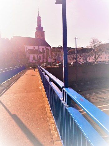 Als wir über die alte Brücke gehen, die ans andere Saarufer führt, wo sich das Schloss und die Gerichtsgebäude befinden, sehe ich unter uns das braune Wasser der Saar gemächlich dahinfließen! Plötzlich kommt mir der Satz aus irgendeinem Film in den Sinn: ,,Das Leben ist eine langer Fluß…! “