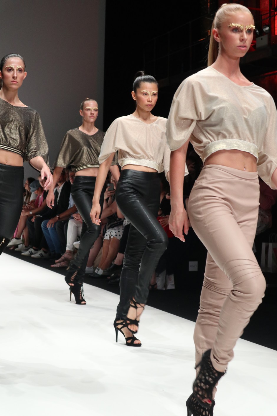Das Design des Labels Maisonnoée besticht durch Kreationen mit klaren, fließenden Linien und raffinierten, der weiblichen Form perfekt angepassten Schnitten! So dürfen wir uns für die nächste Sommersaison auf eine Mixtur edler Materialien wie fließende Seide in Kombination mit weichem Leder freuen! Merkmale sind diesmal Verzierungen in Form einer Kreuz-Schleife und Farben wie Crème, tiefes Weinrot und natürlich Schwarz… Auf überflüssiges Schnick-Schnack wird ansonsten verzichtet und auch die Frisuren, hauptsächlich Buns mit Flecht-Elementen, wirken lässig-elegant. Eine Mode ganz nach meinem Stil, weil sie die Eleganz der Trägerin auf raffinierte Weise unterstreicht… Das Besondere an der Show war übrigens diesmal eine wunderschöne, rührende Gesangseinlage der jungen Tochter Zoé der Designerin…. In dessen Anschluss wurde dann auch von den Töchtern und Freundinnen der Designerin eine hübsche Kinderkollektion mit Stolz präsentiert…